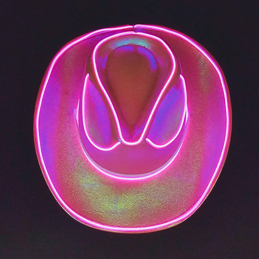 Pink Iridescent Light Up Cowgirl Cowboy Hat with Bright Pink LED Lights