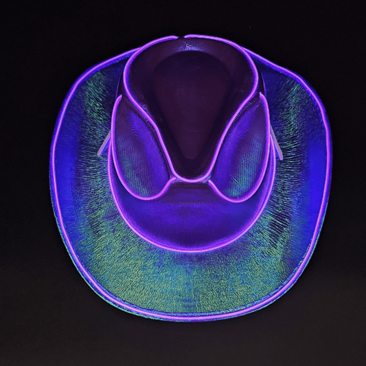 Purple Iridescent Light Up Cowgirl Cowboy Hat with Bright Purple LED Lights