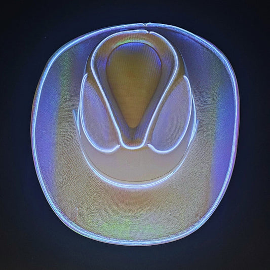 White Iridescent Light Up Cowgirl Cowboy Hat with Bright White LED Lights