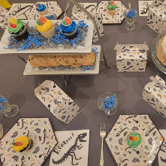Dinosaur Themed Complete Boutique Jurassic Party Package for Kids - 36 Count with 12 Plates, 12 Napkins and 12 Goodie Boxes - Perfect for Birthdays, Baby Showers & School Events!