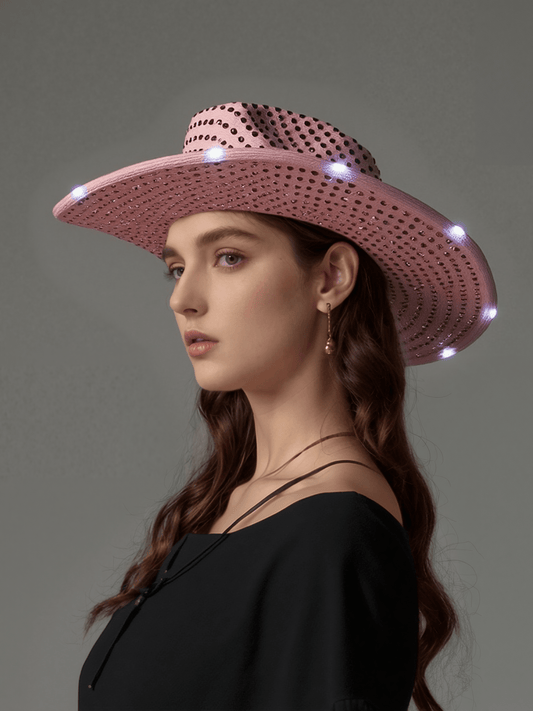 Pink Sparkle Sequin LED Cowgirl Cowboy Hat with Bright White LED Lights